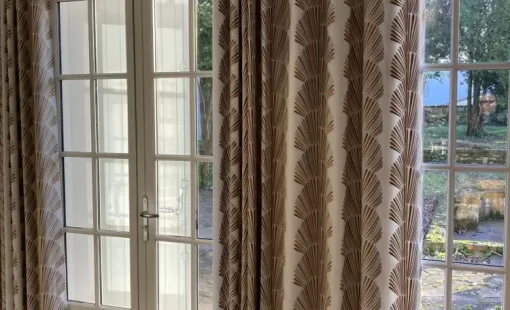 Confection et pose de cette paire de rideaux contre doublée d’un tissu à Saintes