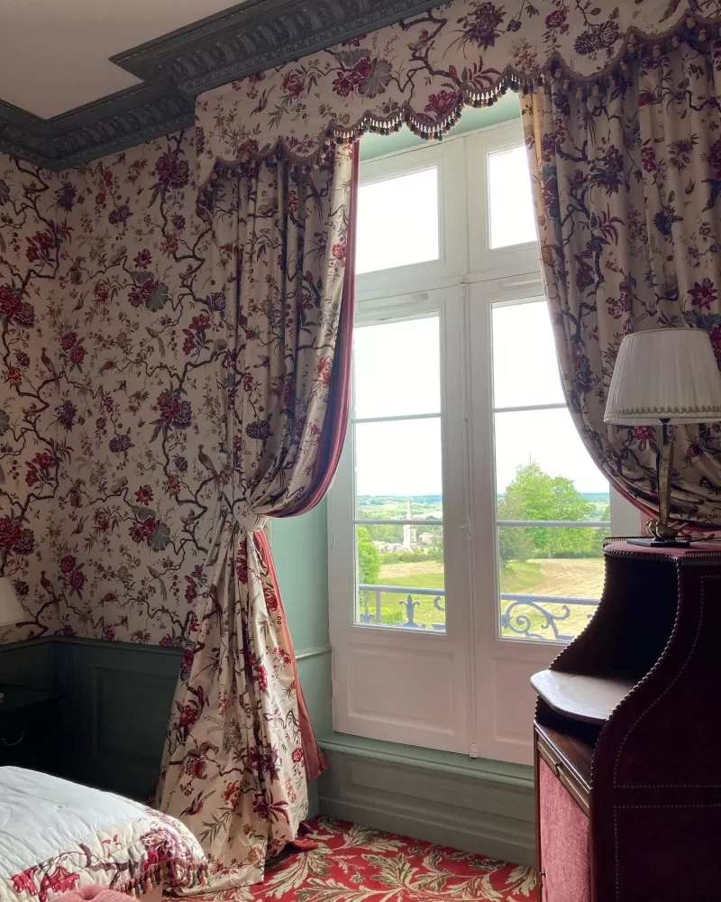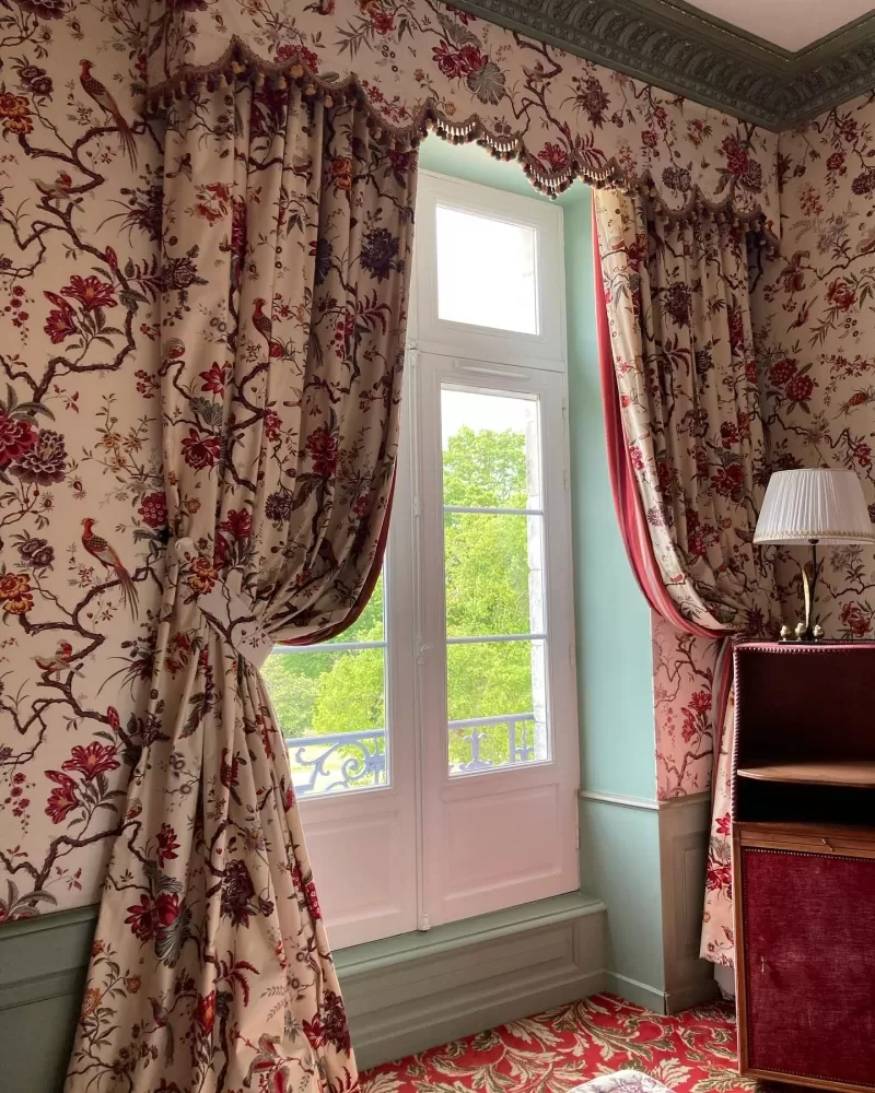 Confection et pose de cette paire de rideaux contre doublée d’un tissu à Saintes